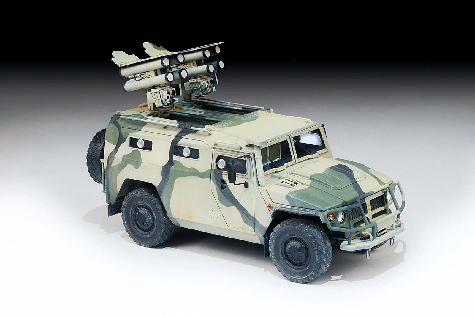 Сборная модель - Корнет-Д – современный противотанковый комплекс на базе бронеавтомобиля ГАЗ «Тигр» с дальностью действия 10 км. Предназначен для борьбы со всеми современными и перспективными танками вероятного противника.