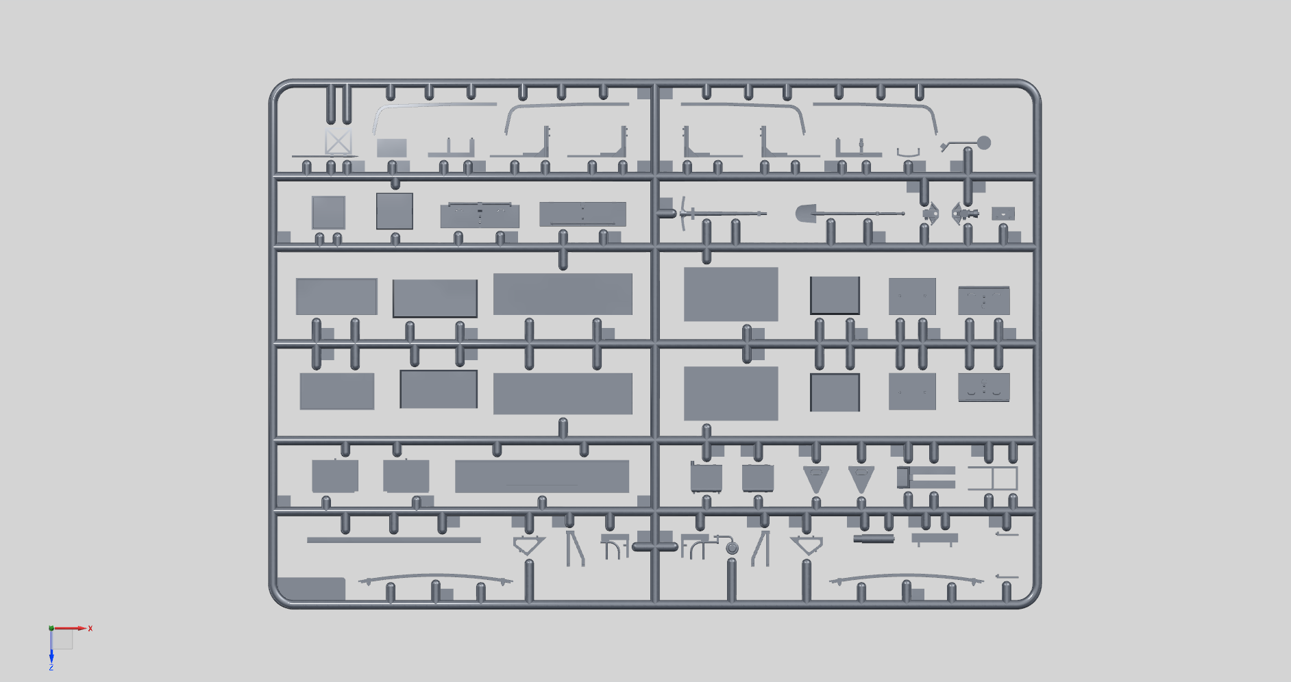 Внешние и внутренние ручки дверей, стеклоподъёмники, замки капота, дворники, инструментальные ящики, шанцевый инструмент, зеркала заднего вида и множество других деталей и подробностей.