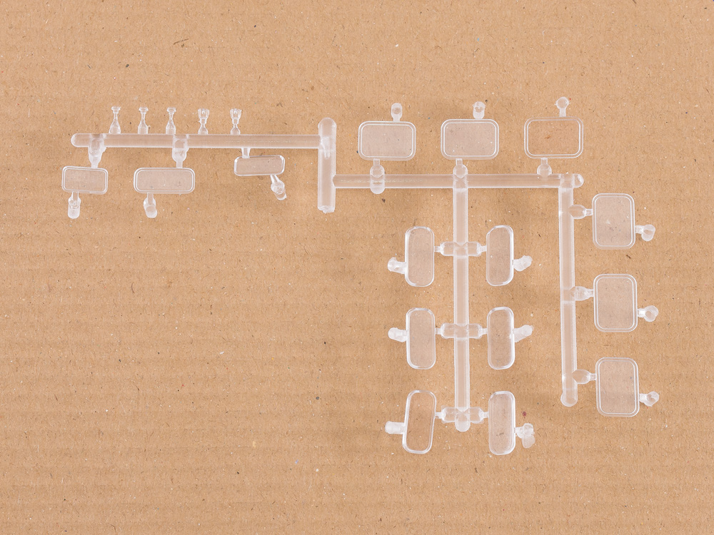 В комплект входит: металлический кузов, пластиковые детали для сборки одной модели, резиновые шины, декали и инструкция.
