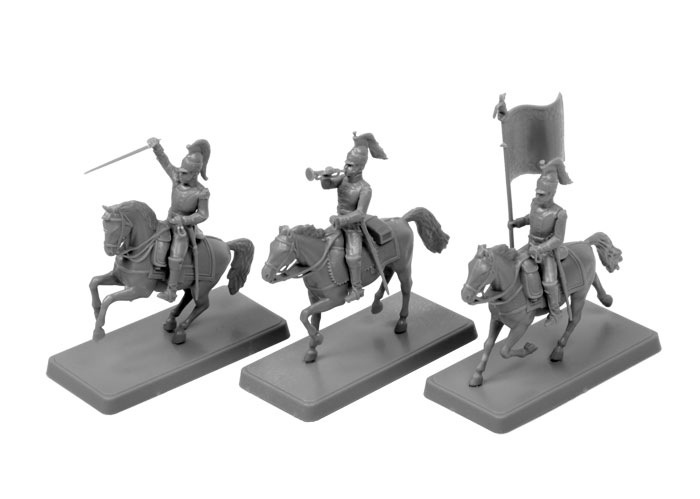 Набор деталей из пластмассы для сборки одного набора конных фигур.