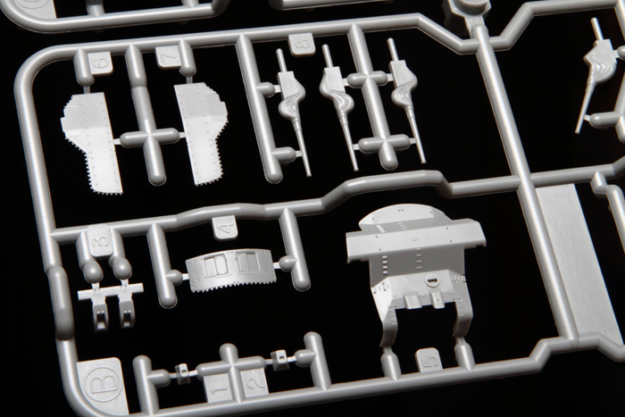 Фототравлёные детали для мачт, межбалубных лестниц, вентиляционных решёток, радара, мачты крана, катапульт и катапультных тележек, различных креплений и проработки множества мелких деталей.